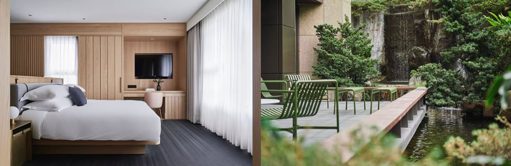 臺北金普頓大安酒店為金普頓品牌亞洲首店,位于臺北東區(qū)靜謐街巷,與購物中心和捷運(yùn)站僅隔一街,周邊遍布文藝畫廊、精品店與人文咖啡館,雖鄰喧囂卻宛如都市靜謐方舟。129間客房與套房融合復(fù)古與白瓷層疊美學(xué),與透光天井相呼應(yīng),處處彰顯設(shè)計巧思。12樓摩登餐酒館The Tavernist為米其林指南推薦餐廳,寬敞露臺可俯瞰臺北城景與臺北101。酒店設(shè)施完善,包括24小時健身房及每日“社交時光”,賓客可盡享設(shè)計感與都市雅致。