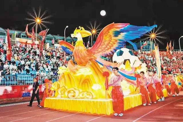 在梁平,一群足球愛好者用一部時(shí)長(zhǎng)4分33秒的微電影致敬足球;在彭水,舞龍、舞獅、玩牛等富有地方特色的非遺展示輪番登場(chǎng);充滿巴渝特色的秀山花燈、銅梁龍舞也在賽場(chǎng)頻頻亮相……