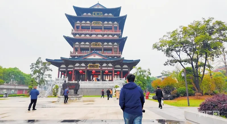采風(fēng)團(tuán)一行循著長江岸線,在狄公樓探尋千年文脈(央廣網(wǎng)記者 周蓓 攝)