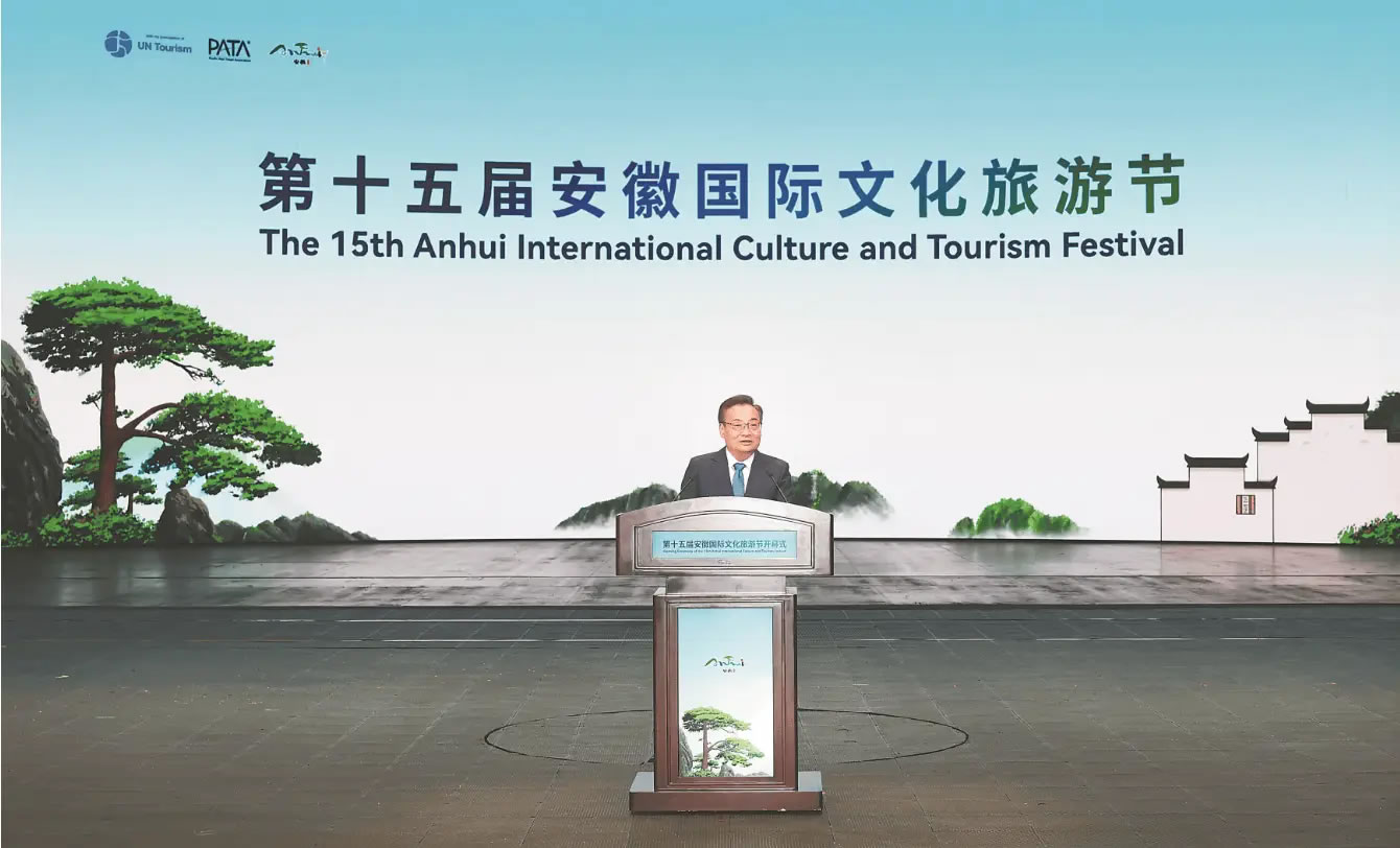 梁言順首先代表省委、省政府向各位嘉賓表示歡迎和感謝。他說,安徽山清水秀、歷史悠久,文化底蘊(yùn)深厚,每一寸土地、每一片山水,都展現(xiàn)出迷人的風(fēng)光、蘊(yùn)藏著動(dòng)人的故事,山水之韻同人文之勝相得益彰、交相輝映。近年來,我們?nèi)媛鋵?shí)“發(fā)展全域旅游,把文化旅游業(yè)打造成為支柱產(chǎn)業(yè)”的重要指示,堅(jiān)持以文塑旅、以旅彰文,持續(xù)做好“百業(yè)+文旅”“文旅+百業(yè)”大文章,“美好安徽 迎客天下”的金字招牌擦得更亮。當(dāng)前,安徽正處在夯實(shí)基礎(chǔ)、全面發(fā)力、創(chuàng)先爭(zhēng)優(yōu)、跨越趕超的關(guān)鍵時(shí)期。我們將深入學(xué)習(xí)貫徹黨的二十屆四中全會(huì)精神,持續(xù)完善政策保障體系,推動(dòng)文化和旅游業(yè)態(tài)融合、產(chǎn)品融合、市場(chǎng)融合,豐富高品質(zhì)文旅產(chǎn)品供給,打造更多文旅精品,讓海內(nèi)外游客在“詩和遠(yuǎn)方”的雙向奔赴中續(xù)寫新的故事。
