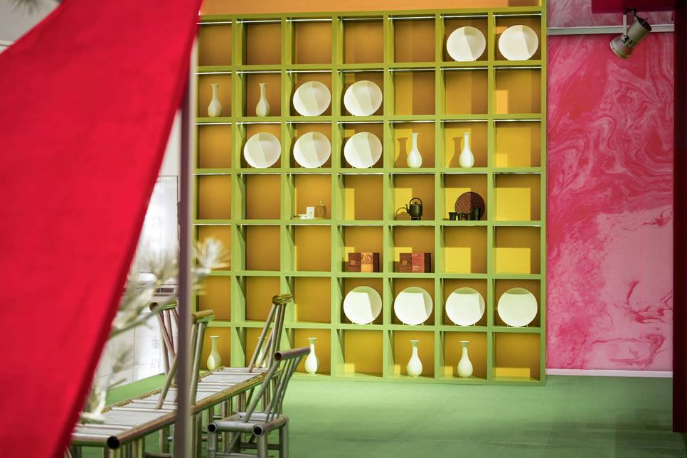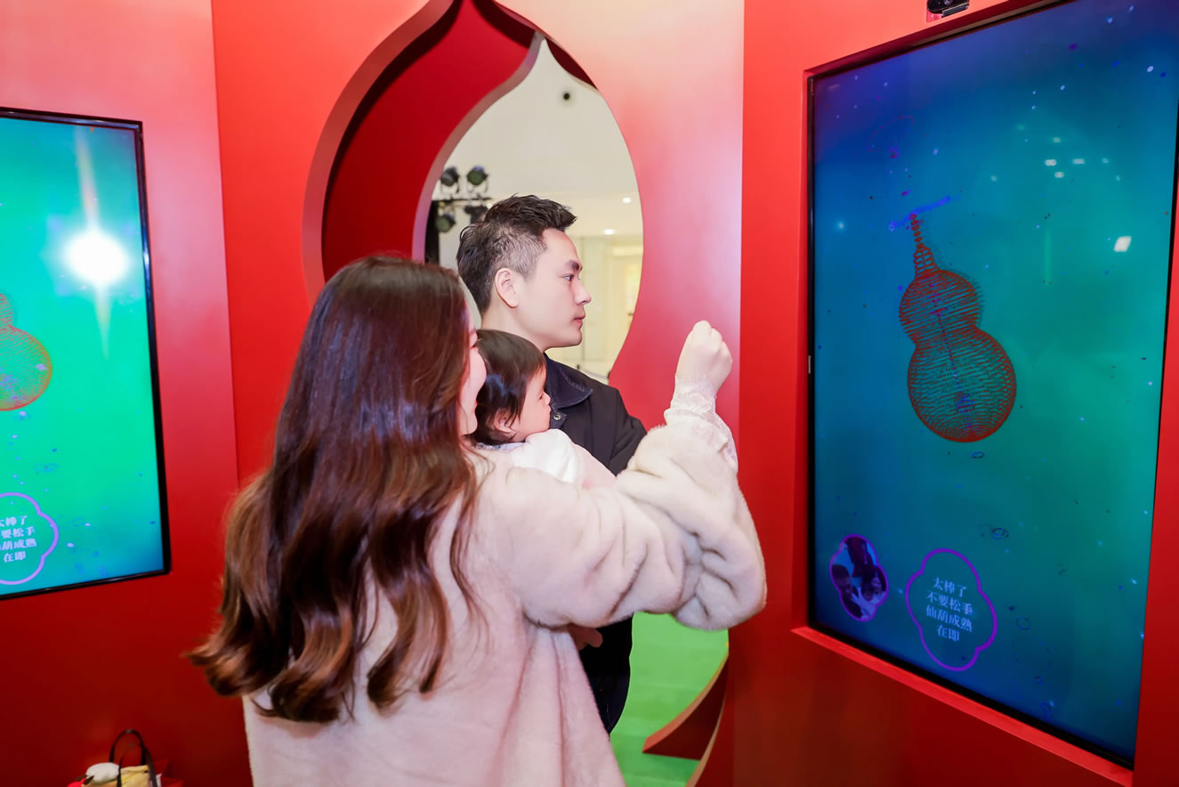 山水,并非遠(yuǎn)行才可得見。書法水墨藝術(shù)家劉玥首展作品《春山行遠(yuǎn)圖》以20米巨幅“山水開卷”,步入其中,與天地春意從容照面;紅色的帷幔落于銀色的松枝上,就像于山間松下靜謐的一隅,“幕下棲心”將是絕佳開年時(shí)尚大片的打卡處;松下銀椅,為你與摯友“漫敘往來(lái)”的相聚時(shí)刻營(yíng)造出寧?kù)o、松弛的氛圍;多寶閣中陳列著未經(jīng)雕琢的茶器素胚與場(chǎng)內(nèi)品牌萬(wàn)仟堂,長(zhǎng)沙尼依格羅酒店及tea'stone帶來(lái)的新春茶器,以“初芒蘊(yùn)能”詮釋著未來(lái)的無(wú)限可能與新生力量。轉(zhuǎn)身與“蒔光種愿” 四方亭相遇。葫蘆門朝四方而開,寓意著納四方福祿,步入其中,與數(shù)字交互藝術(shù)家吳旭首展作品《無(wú)限福祿》體驗(yàn)互動(dòng),跟隨指引揮動(dòng)手勢(shì),觸發(fā)粒子凝聚為動(dòng)態(tài)“福”字,親手完成一場(chǎng)新春祈福儀式。我們把象征團(tuán)圓與喜悅的紅色沙發(fā)打造“盞間聚暖”,如懷抱般圍合的布局作為“歸處”的隱喻。與家人團(tuán)聚便是心歸處,這將是中國(guó)年最圓滿的意象。