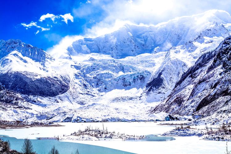 該冰川常年雪光閃耀,景色神奇迷人。米堆冰川位于北緯29°,但冰川末端卻比北緯近44°的天山博格多山的冰川還要低,這是我國現(xiàn)代冰川中較為特殊的現(xiàn)象,與喜瑪拉雅山東南段的氣候有著密切的關(guān)系。