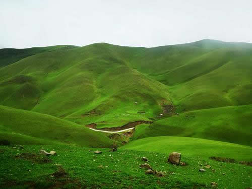 一眼眼山泉匯成一洼洼積水,一洼洼積水連成一道道溪流,隨意在草山之間流淌,曲曲折折,蜿蜒蛇行,時(shí)時(shí)有水往高處流的錯(cuò)覺(jué)。