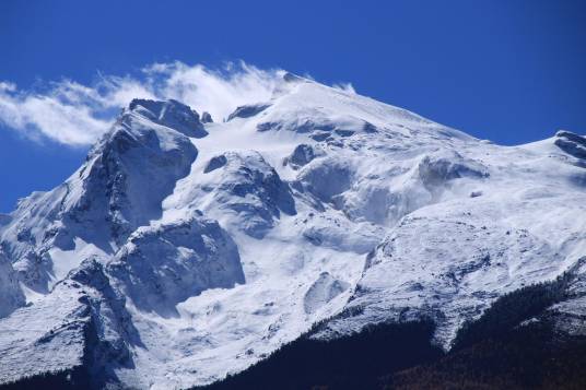 哈巴雪山,位于云南省西北迪慶藏族自治州香格里拉市東南部,青藏高原向云南高原過渡地帶,是橫斷山系和三江并流世界自然遺產(chǎn)地的重要組成部分。哈巴雪山南北長(zhǎng)約25千米,東西寬約22千米,主峰海拔5396米,相對(duì)高差3846米,是滇西北金沙江上游發(fā)育有典型現(xiàn)代海洋性山岳冰川的極高山之一,為云南省境內(nèi)第四高峰?偯娣e219.02平方千米。