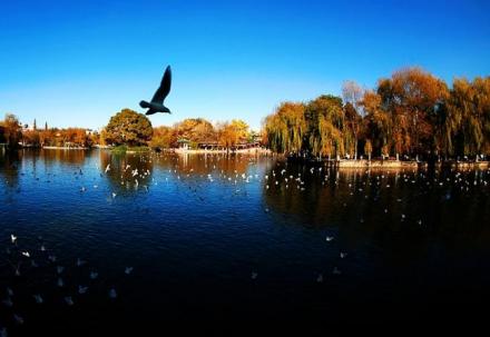 翠湖位于昆明市五華山西麓,占地面積352畝。湖東北有“九泉所出,匯而成池”,故又名“九龍池”。堤畔遍植垂柳,柳枝拂面,湖內(nèi)多種荷花,藕花飄香,舊有“十畝荷花魚世界,半城楊柳撫樓臺(tái)”之聯(lián),被譽(yù)為“城中碧玉”。有亭、臺(tái)、回廊、曲橋等建筑,其建筑精致玲瓏,亭閣均有匾對(duì),歌詠園中的景觀。