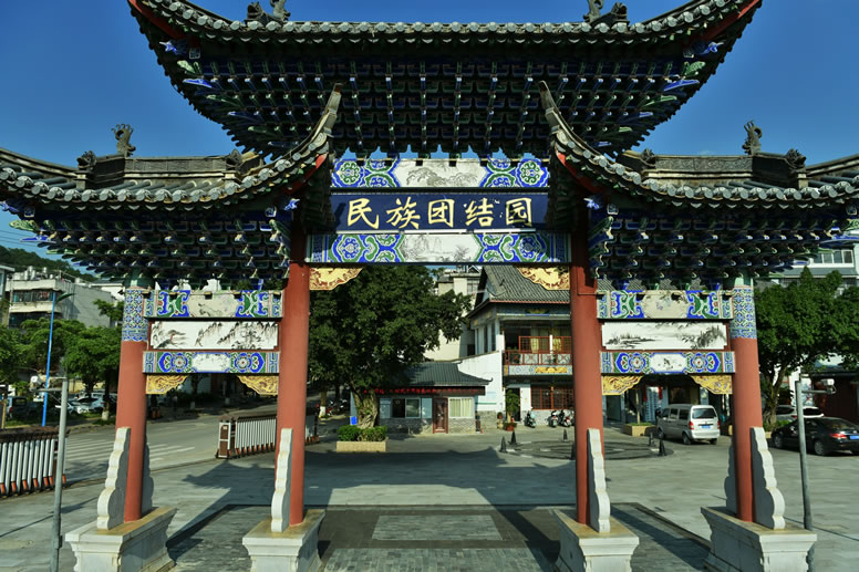 民族團結(jié)園占地面積4437平方米,建有牌坊大門、古式六角碑亭、仿古彩繪主大樓、佛雕等建筑,是一座集觀賞、參觀、教育于一體的園地。2003年,被省委、省人民政府列為云南省第二批社會主義教育基地、愛國主義教育基地;2006年5月,被國務(wù)院批準(zhǔn)列為第六批全國重點文物保護單位;2006年8月被國家民委授予“全國民族團結(jié)進步教育基地”稱號。 園內(nèi)有“新中國民族團結(jié)第一碑”——民族團結(jié)誓詞碑,1951年元旦,普洱專區(qū)26種民族的代表和黨政軍領(lǐng)導(dǎo)剽牛、喝咒水盟誓,立下此碑,為滇南民族團結(jié)鑒證物。