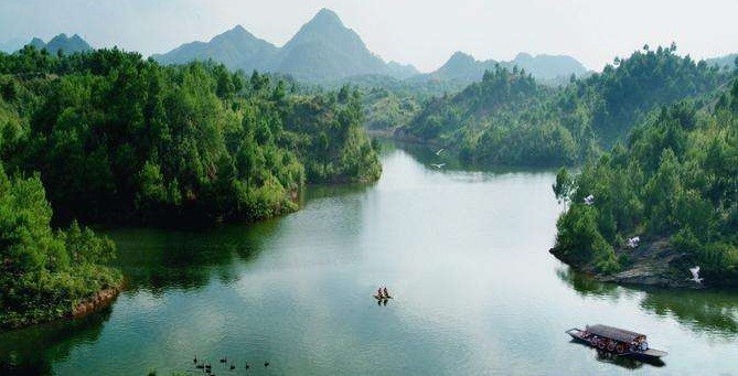 珠江源頭第一湖——花山湖。湖區(qū)地貌屬喀斯特地貌,花山湖湖面寬廣,湖中小島星羅棋布。群島周圍棲息著各種鷗、野鴨等。