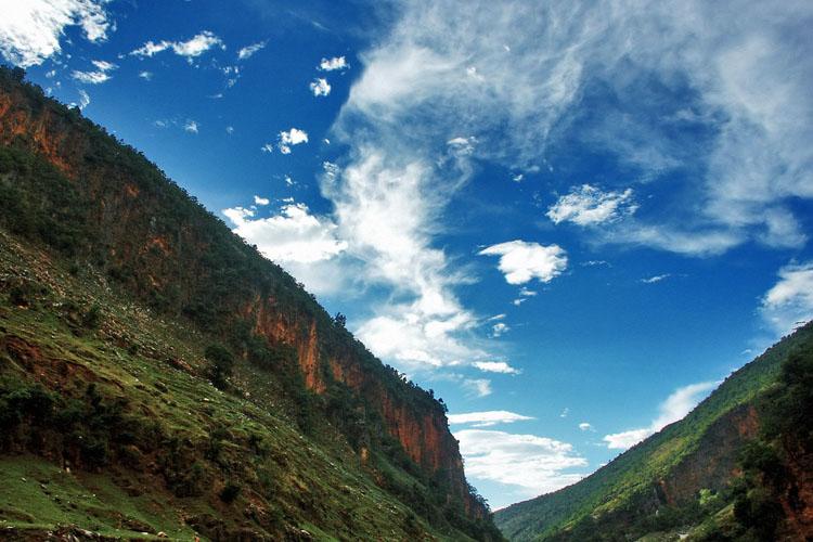 從馬雄山往西,有七彩大峽谷。峽谷起自大坡,終至德澤,全長57公里。峽谷之內(nèi)山高水長,兩岸石壁呈紅、黃、白、綠、藍、青、紫等各種色調(diào)故名“七彩谷”。