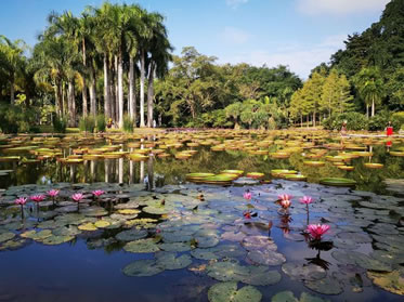 水生植物園水面面積15畝,收集和展示熱帶地區(qū)種類繁多的水生植物,現(xiàn)收集保存了約100種(品種)。該園按照水體深淺等水濕小環(huán)境和植物生態(tài)習性分別種植了不同生活形態(tài)的水生植物,包括:浮葉植物——植物根系或地下莖扎根水底,莖生長于水中,葉柄長度可隨水位而伸長,葉及花朵浮在水面上的水生植物,如王蓮、睡蓮、芡實、萍蓬草。浮水植物——植株整體漂浮于水面,根部不生于泥中,可隨水流四處漂泊的植物,如雨久花、滿江紅、鳳眼蓮、美洲槐葉萍、紫萍、大漂、眼子菜、荇菜。沉水植物——完全的水生植物,大部分生活周期中植株沉水生活,它們多生活在水較深的地方,根長在土里,葉片通常呈線形、帶狀,如金魚藻、黃花貍藻、黑藻等。挺水植物——下部或基部沉于水中,根或地下莖扎于泥中生長發(fā)育,上部植株挺出水面,通常生長在淺水或水邊的水生植物。如荷花、紙莎草、畦畔莎草、水蔥、長節(jié)淡竹芋、白粉塔里亞、水芋、水生馬蹄、撒金澤瀉、澤瀉、黃花藺、千屈菜、蔗草、菖蒲、慈姑、黃花鳶尾。濱水植物——生長在岸邊或堤岸潮濕的地方,喜水耐濕,如水杉、落羽杉、水松、木芙蓉等。
