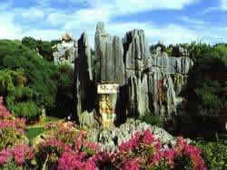 外石林主要指位于大小石林之外的周圍風景區(qū)。這片風景區(qū)方圓數(shù)十里。在野嶺荒山,鮮花綠樹叢中,又有許多奇峰怪石點綴其間。這些異石個體龐大,形象生動,加上周圍環(huán)境生機勃勃,視野也較為開闊,游覽又別有一種情趣和感受。
