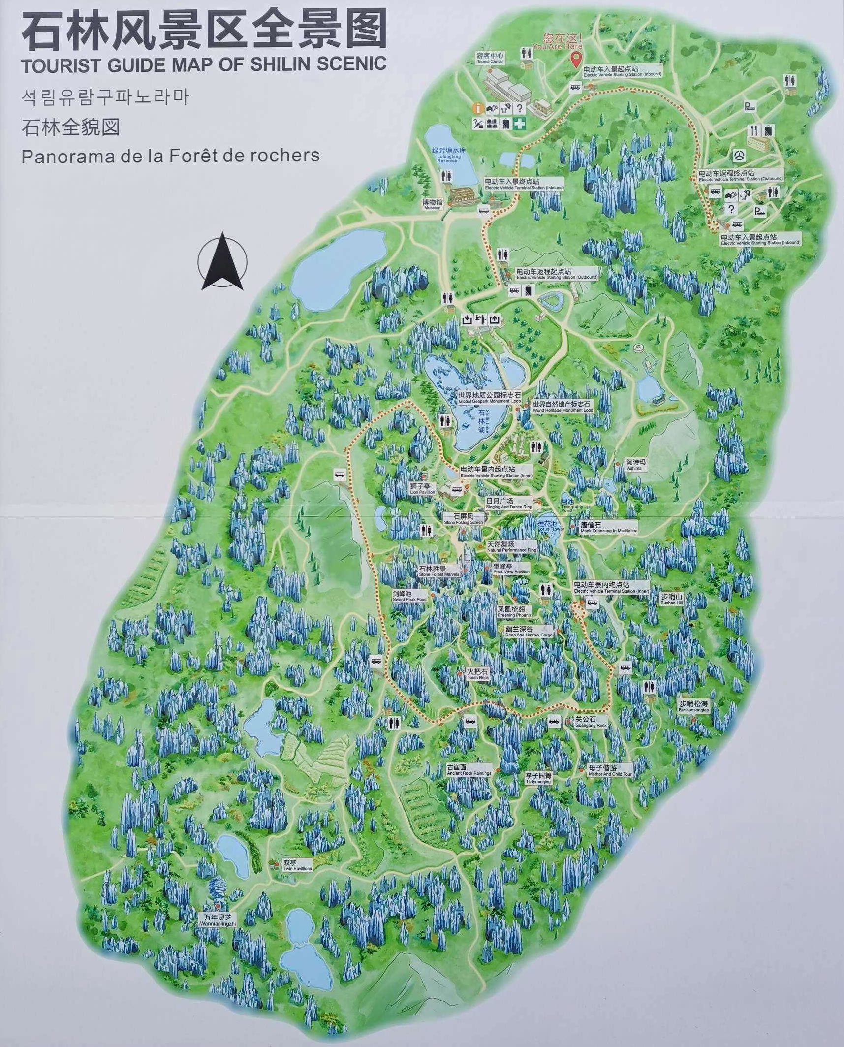 乃古石林位于“石林”以北13公里處,也叫和摩寨石林,“乃古”彝語意為黑色,“乃古石林”即黑色的石林。占地333.3萬平方米,新辟游路6公里多。與“石林”相比,這里又是另外一種特色和風格。