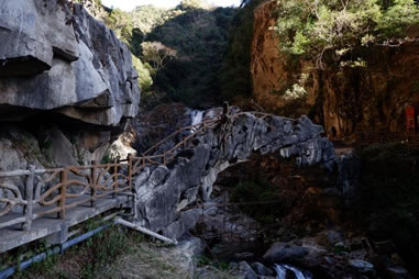 古代的文人墨客雖然游了石門關(guān),但卻不能進入石門關(guān)縱深之處游覽,李元陽驚呼石門內(nèi)“忽驚飆從空中飛墜,聲如訇雷,凜乎不可留,從者扶挽而出!毙煜伎涂疾斓绞T關(guān)口嘆道:“但門以內(nèi)則石崩水涌,路絕不通,乃復(fù)上就北岐躡磴”。二位先賢不能進入石門縱深游覽,不能說不是一種遺憾。隨著歲月的流逝,歷史的滄桑巨變,現(xiàn)代人能隨心所欲進入石門縱深探幽走險,實在是一種福份。