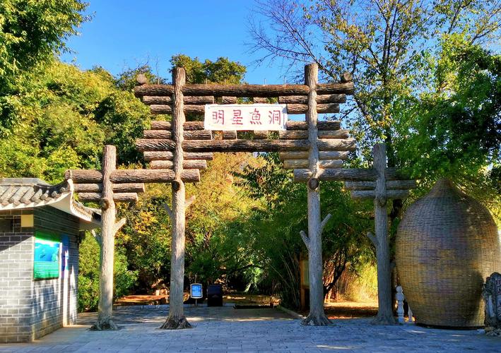 明星魚洞,百余個魚洞依石壁之下的泉眼分布在近千余米長的撫仙湖沿岸。每年的3-9月,是撫仙湖特產抗浪魚捕撈的主要季節(jié)。當?shù)貪O民用木制的水車從綠樹掩映的石洞泉眼里把泉水車出,經過溝道流入湖內,泉水與湖水的溫差和流速恰好迎合了爭強好勝、喜歡清水的抗浪魚的生活習性,魚兒便群集搶水而上,鉆人了漁民們預先放置在流水溝道里的竹籠而被捕獲、這種捕魚方法歷代沿襲,古老而獨特,人們稱之為“車水捕魚”。