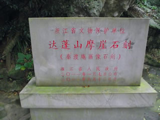 摩崖石刻是后人為緬懷徐福東渡這一歷史事件而保存下來的歷史古跡,大約刻于唐宋間,故而十分珍貴,具有極高的歷史研究價值。石刻面朝東南,高1.2米,寬3.5米,整幅畫面展現(xiàn)“人馬步金橋”、“鯉魚跳龍門”、“麟鳳呈祥瑞”等場面,表現(xiàn)了徐福率童男童女從達(dá)蓬山東渡出海的史實(shí),也是全國唯一幸存的反映徐福東渡的歷史古跡。清康熙庚子年僧人惠初游覽達(dá)蓬山時,在其中挖了神龕,并刻有“靈臺自若”等字樣。