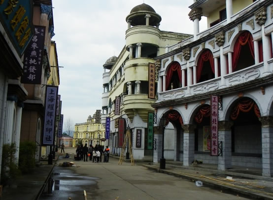 1996年,為拍攝獻(xiàn)禮巨片《鴉片戰(zhàn)爭》建造了第一個(gè)影視拍攝基地——廣州街景區(qū)。