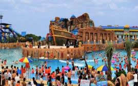 水世界:占地面積90畝,以地中海地區(qū)的地理風(fēng)貌為原型,以中東地區(qū)的文化背景和世界名著《一千零一夜》的故事為主題。建有一千零一夜戲水區(qū)、地中海海浪區(qū)、土耳其古城區(qū)、颶風(fēng)灣探險(xiǎn)區(qū)和更衣室、商鋪、醫(yī)療中心、迷童中心等相關(guān)配套服務(wù)設(shè)施,擁有亞丁風(fēng)暴、幼發(fā)拉梯、辛巴飛毯、波塞冬碗、多哈滑道和愛琴藍(lán)海(海浪區(qū)、海嘯區(qū))等大型水上游樂設(shè)備和游樂區(qū)域,游客容量在10000人以上。
