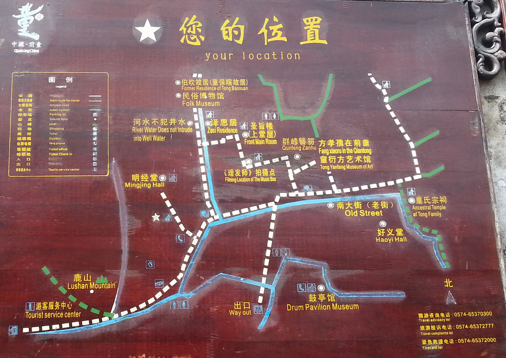 村落按“回”字九宮八卦式布局。童姓祖先按照八卦原理,把白溪水引進村莊,潺潺溪水挨戶環(huán)流,人人可在溪水中洗菜凈衣,家家連流水小橋,戶戶通卵石坦途。青藤白墻黑瓦,石頭鏤花窗戶,雕梁畫棟門樓,蒼涼中顯現(xiàn)出昔日曾經(jīng)的繁華。